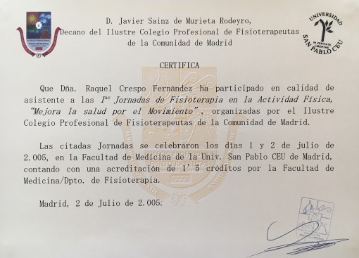 Seguí haciendo formación continuada en fisioterapia (aún sigo y seguiré) y de eso hace ya más de 20 años.